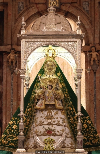 Como explicaba la archicofradía, «entre otros detalles, pende de su manto la condecoración de la Real Orden de las Damas Nobles de la Reina María Luisa (creada en 1792), cuya insignia representa al Rey San Fernando, tan vinculado al origen y la historia del Santuario y de la Santísima Virgen».