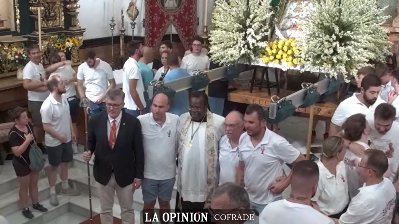 La función principal tenía lugar a las 12h, presidida por el rector, párroco y consiliario, Emiliano Nguema y concelebrada por el canónigo portavoz del cabildo de la catedral cordobesa, José J. Jiménez Güeto.