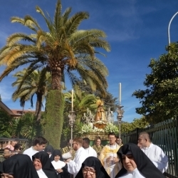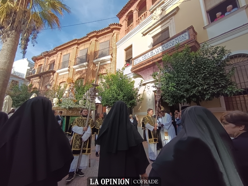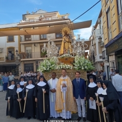 En este año se celebra la presencia continuada de su labor en Cabra, con la fundación del primer asilo allá por el año 1875 cuando Teresa de Jornet visitaba Cabra para poner en marcha su casa en la calle Terzuela. Desde entonces han pasado 150 años con la dedicación y entrega de esta comunidad que atiende a un centenar de personas ancianas en la Residencia Nuestra Señora de la Sierra de la Avenida de Andalucía. Y desde allí partía en torno a las 16h, el cortejo procesional que llevaría la imagen de la Virgen de los Desamparados, patrona de la orden, por las calles de la ciudad.