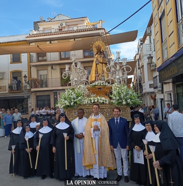 Y en este contexto, la procesión de la Virgen de los Desamparados, pretendía agradecer a la ciudad de Cabra todos los apoyos y el cariño recibido en estos ciento cincuenta años de historia y presencia. Cofradías, con el presidente de la Agrupación al frente, asociaciones, personal de la casa, voluntariado y familiares de personas acogidas, participaron en la procesión conformando un amplio cortejo en el que también participó la Hermandad de la Virgen de los Desamparados de la vecina localidad de Puente Genil que quiso participar en esta procesión. En el tramo final un grupo de religiosas de diversas casas de la congregación junto a las que están en Cabra, con la madre superiora Sor Marlene Granados, junto a la presidencia religiosa que ostentaron el capellán de la casa y párroco de San Francisco y San Rodrigo, Mario González, junto al vicario parroquial de Santo Domingo, Francis Ukpong, hasta la Plaza Vieja, incorporándose luego el párroco de la Asunción y Ángeles, Emiliano Ngmena.