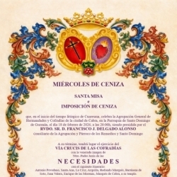 La misa de inicio del tiempo de Cuaresma que organiza el colectivo cofrade tendrá lugar en la parroquia de Santo Domingo de Guzmán, sede de la Agrupación, el miércoles 18 de febrero de 2026 a las 20h. La celebración eucarística será presidida por el consiliario de la Agrupación y párroco de Gaena, los Remedios y Santo Domingo, Francisco J. Delgado Alonso.