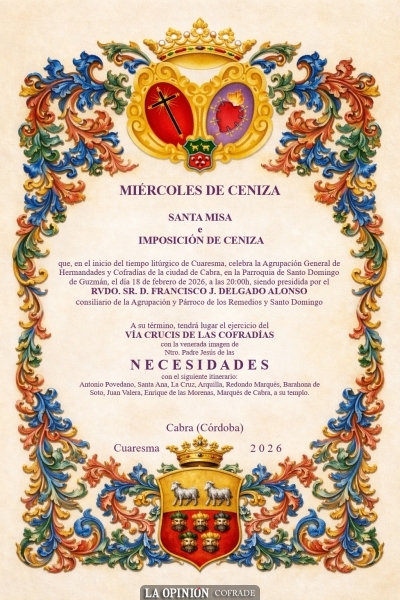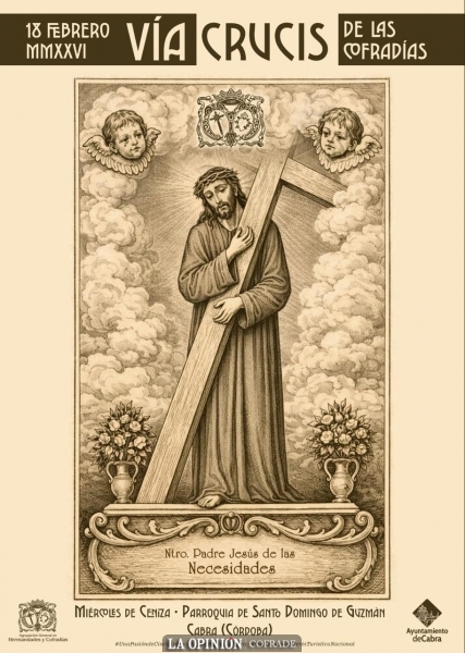 La imagen que saldrá este año en el Vía Crucis de las Cofradías será la del Señor de las Necesidades, que también es la que ilustra el cartel anunciador de la Semana Santa de Cabra en el presente año 2026.