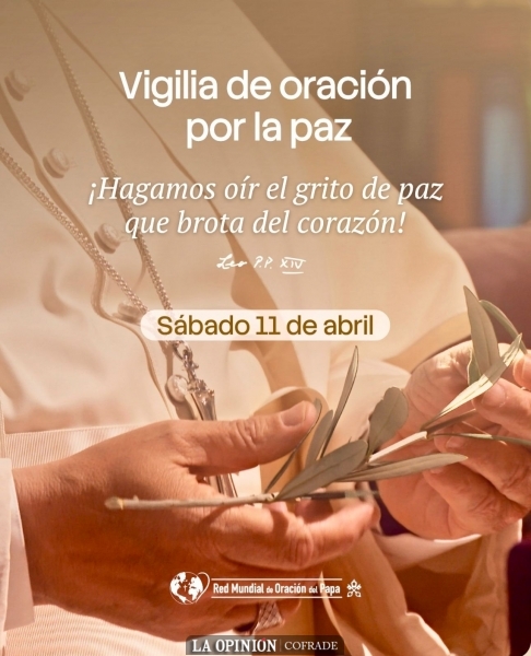 Renuevo a todos la invitación a unirse a mí en la Vigilia de Oración por la Paz que celebraremos en la Basílica de San Pedro el sábado 11 de abril a las 18.00, hora de Roma» Papa León XIV