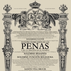 La Real Hermandad de la Oración en el Huerto comienza este fin de semana con los primeros de los Cultos en honor de su titular Cristífero, la imagen de Ntro. Padre Jesús de las Penas, que se encontrará este sábado 16 de marzo en besapié en la Parroquia de la Asunción, en una ceremonia que recogerá donativos para Cáritas Parroquial. En la noche, celebrarán la anual Función Solemne, presidida por el Arcipreste de Cabra, Lucena y Rute.