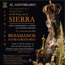 Este 2018 se cumplen cuarenta años de la intervención que llevó a cabo el cordobés Miguel Arjona Navarro en la imagen de Nuestra Señora, María Santísima de la Sierra en mayo de 1978. Con tal motivo, la Real Archicofradía ha organizado varios actos entre los que destaca el besamanos extraordinario en el Santuario.