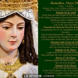 El próximo sábado 28 de abril con la misa y procesión de gloria de la Virgen de los Remedios por el Barrio del Cerro, se inicia todo un mes de actos y cultos en honor de la titular mariana de la Archicofradía de la Vera Cruz, decana de las hermandades egabrenses.