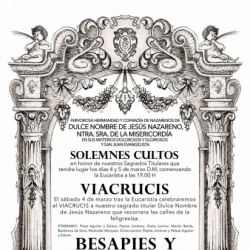Y como no hay dos sin tres, también esta primera semana de Cuaresma tenemos los cultos de la cofradía de la Misericordia en la parroquia de los Remedios que serán los días 4 y 5 de marzo.