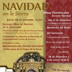 La Real Archicofradía de María Santísima de la Sierra ha anunciado los actos a celebrar en torno a la imagen de la Patrona de Cabra con motivo de la Navidad, y centro del Año Jubilar concedido a la Divina Serrana por el Papa Francisco, con motivo del 1300 aniversario de su ocultación, 775 de la aparición y décimo aniversario de la Coronación Pontificia. Un besamanos extraordinario del Niño de la Virgen y villancicos de los mochileros de Zuheros centrarán los actos.