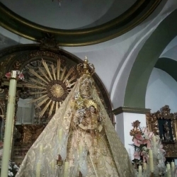 Tras los intensos días vividos en la Iglesia de San Juan Bautista del Barrio del Cerro, con la estancia de Ntra. Sra. de la Sierra en los muros de tan antiguo templo, la venerada imagen de nuestra Patrona regresa esta tarde a la parroquia de la Asunción. Será un regreso tan especial como el traslado de ida, aunque esta vez podremos contemplar a la Virgen sin andas, sobre una sencilla parihuela y peana, que le permitan pasar por las estrechas callejuelas del barrio del Cerro.