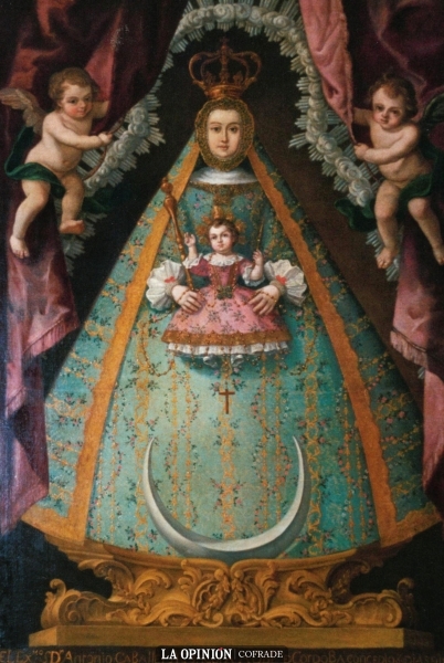 Así permaneció como unos seis meses sin salir de su cuarto y a lo más alguna vez que su mujer lo bajaba al cuerpo de la casa para algún tanto distraerse oyendo a los que entraban. Al final de ese tiempo oyó decir el declarante que a Nuestra Madre y Patrona María Santísima de la Sierra se iba a trasladar desde la iglesia parroquial de esta villa en donde se hallaba a su Santuario de la Sierra, y deseoso de conseguir su salud y vista, por la intercesión de tan digna mediadora, se encomendó a su protección, y le ofreció, si le daba la vista, solemnizarla con una misa cantada, una libra de cera y unos ojos de plata.