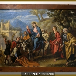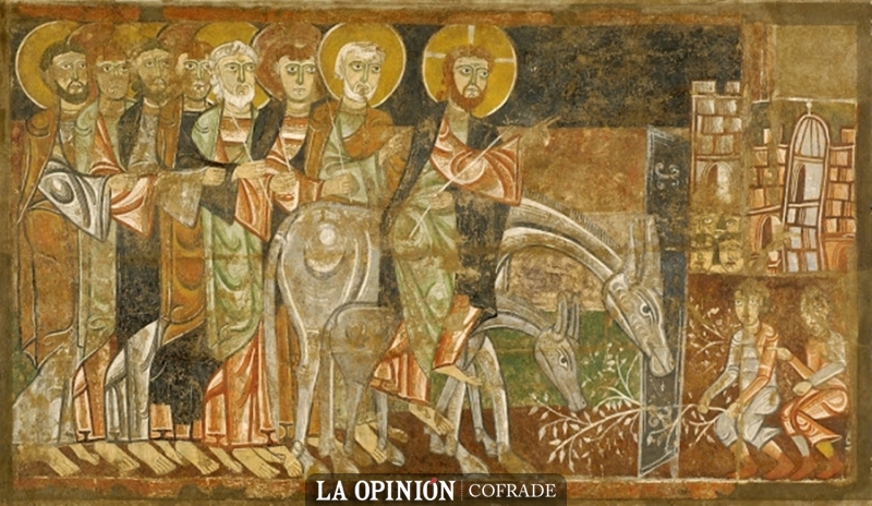 Desde las primeras representaciones que tenemos de esta escena o misterio de la Entrada en Jerusalén se mantiene el mismo esquema iconográfico de los textos bíblicos y patrísticos: Cristo a lomos de un asno (o una asna con su pollino), el pueblo aclamando, el acompañamiento del Apostolado, incluso la palmera de fondo. Todo responde a un mismo relato simbólico y lo más significativo es que no sólo se reproduce igual en la tradición litúrgica y en la celebración, sino en el Arte. Y pasa lo mismo con las cofradías puesto que la tradición es la misma que podemos ver en la actualidad.