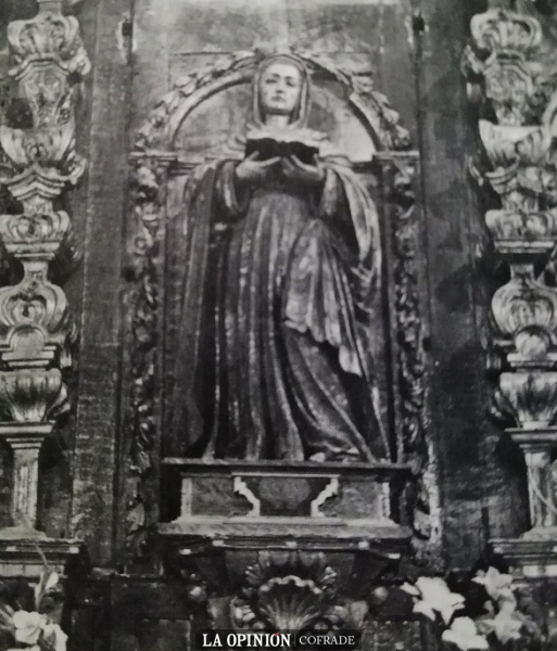 El planteamiento iconográfico del retablo de San Juan de Dios, en sus trazas de los siglos XVII-XVIII, fue el más genuino en cuanto a representar la filiación terrena de la Madre de Jesús. Como la mayoría de las iglesias de la Orden Hospitalaria, tras la profunda renovación que se realiza de la mano de Fray Alonso de Jesús Ortega y que se expande por un buen número de templos, los retablos principales de las iglesias recogían a la Inmaculada en el centro del retablo y en las calles laterales a san Joaquín y santa Ana, como parentela de la Virgen en el plano horizontal. Tras la desamortización y sobre todo con la llegada de la Archicofradía del Nazareno a san Juan de Dios, el planteamiento del retablo mayor queda desfigurado y se cambia la ubicación de las imágenes con las que fue concebido. Estas imágenes estuvieron algunos años en el presbiterio de la iglesia de San Juan de Dios, también en la iglesia de San Juan del Cerro y ahora en la parroquia de la Asunción retiradas del culto.