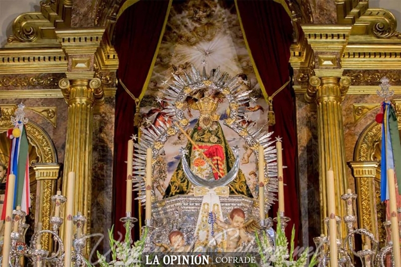 Así nos presenta la Cofradía Matriz a la Santísima Virgen de la Cabeza para la fiesta de su Aparición la noche del 11 de agosto: Los Ángeles abren el velo del cielo y nos manifiestan la obra más grande y hermosa de la creación: MARÍA.