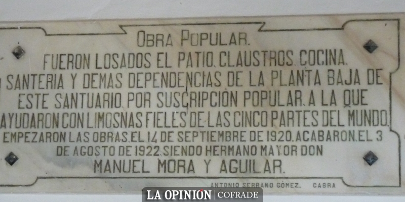 Los nuevos balcones de la planta superior del patio porticado, las mejoras en la hospedería y vivienda del capellán, en las cuadras, la colocación de 40 manillas "a las que pueden asirse cómodamente otras tantas bestias", y sobre todo el inicio del enlosado del patio y la construcción de una ala nueva serían las mejoras que hace un siglo se estaban realizando en el Santuario como recogía La Opinión en el número 437 de 15 de agosto de 1920. No falta tampoco la alusión nominal a personas que colaboraron y también a los jornaleros que daban "dos horas más cada día que los modestos obreros dan en honor de la Virgen de la Sierra". Incluso una conversación entre ellos, que siempre gustaba incluir al redactor de la época, pone el tono literario propio de aquella manera de redactar tan singular de los primeros años de La Opinión, ya volcada con toda su redacción y Manuel Mora Aguilar, en la difusión de todo lo relacionado con la Virgen de la Sierra.