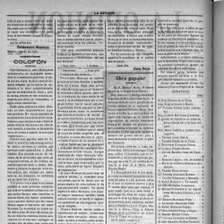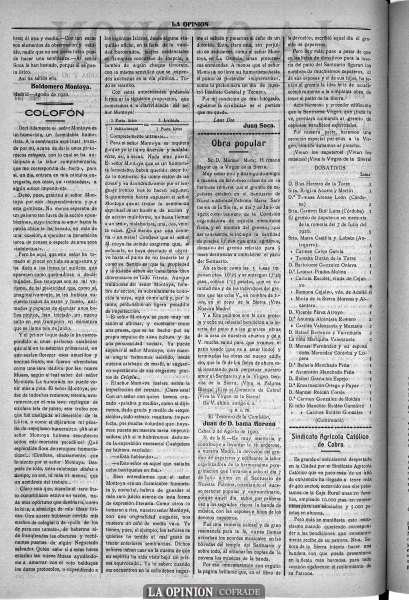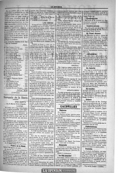Como nuestros abonados saben, bajan del cielo profusión de limosnas para el pavimento de la Sierra y para ayudar a las obras; de todas partes llegan cartas con abundantes dádivas y frases de aliento para proseguir los trabajos.