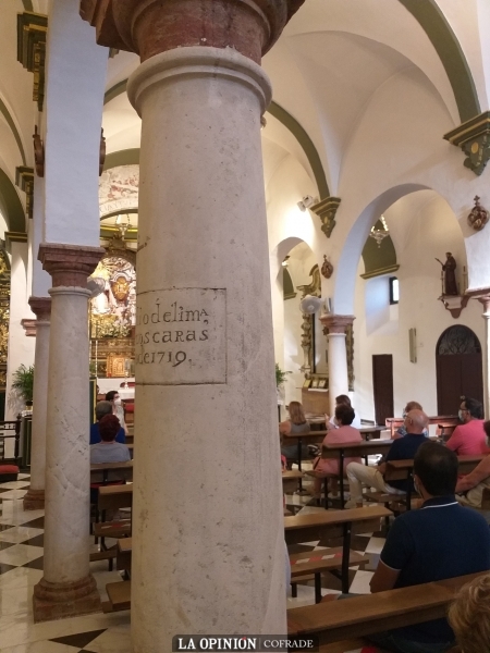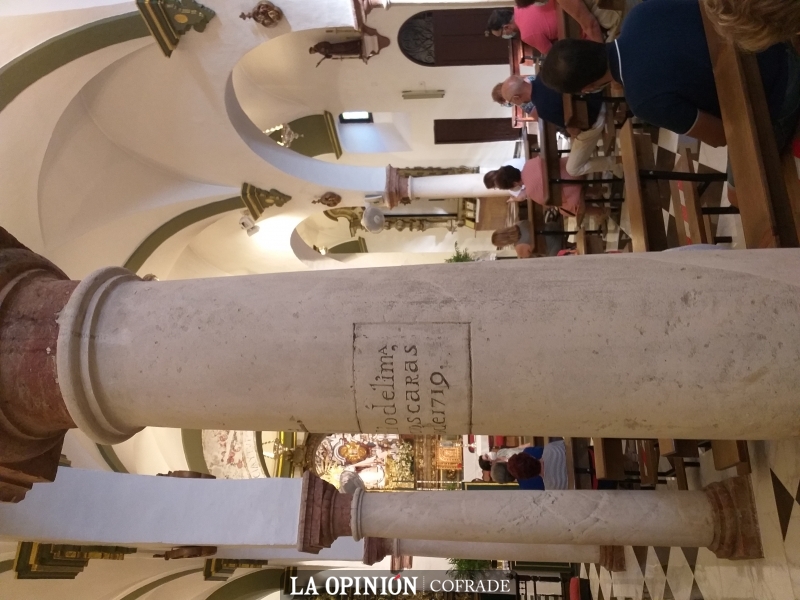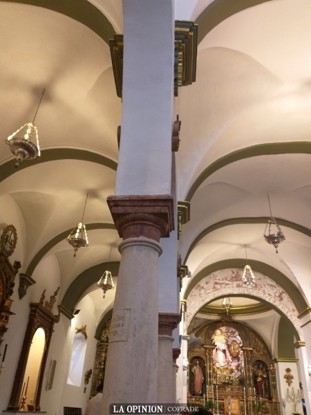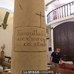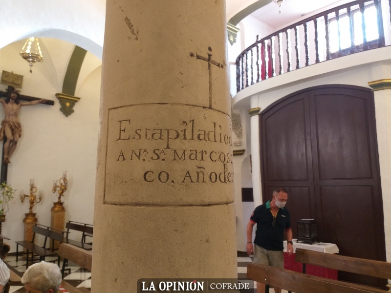Por ese tiempo, se produce cierto incidente en la ermita de San Juan Bautista y hay que sustituir una de las columnas que soportan la techumbre. En acción de gracias, Marcos Carrasco ofrece pagar el importe de la nueva columna, que había de llevar una inscripción con su nombre. La columna tiene unas características ligeramente diferentes a las otras siete del templo.