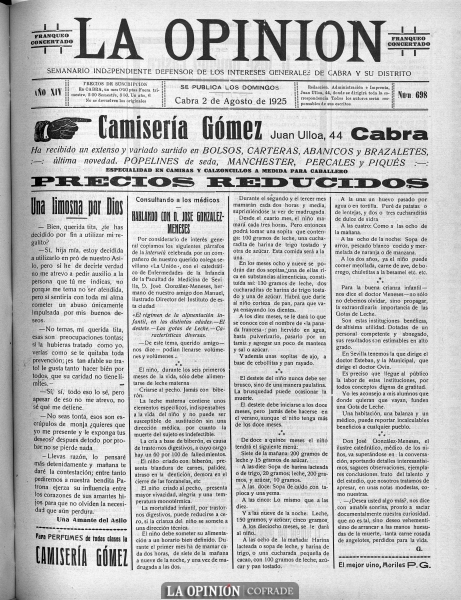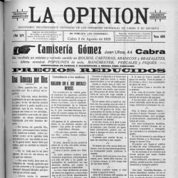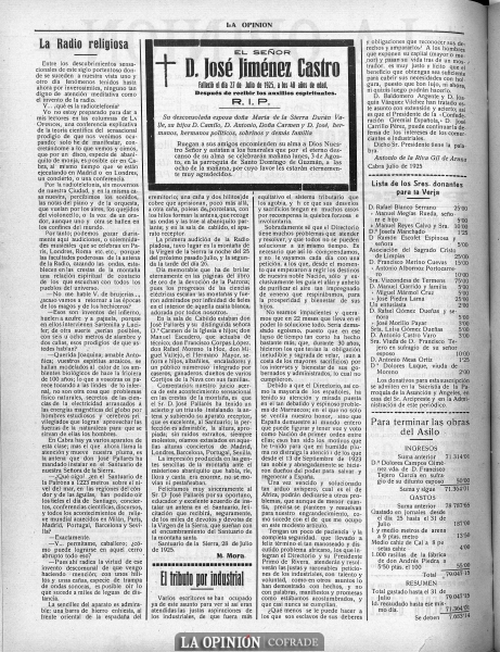 En el número del 2 de agosto de 1925, La Opinión publicaba, entre otras noticias y crónicas, la primera audición radiofónica que se realizó en el santuario de la Virgen de la Sierra los días 25 y 26 de julio de 1925.