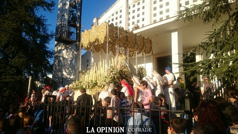 En la noche del miércoles, tanto la plaza del Conde de Cabra en la salida del Buen Fin, como el llanete de Santo Domingo en la de Jesús de las Necesidades, ofrecían un aspecto inmejorable para presenciar estampas ya clásicas de esta jornada. La Virgen del Buen Fin volvió a realizar el milagro de su salida por la angosta portada del compás de la antigua Iglesia de Capuchinos, anexa al Colegio San José - Fundación Escolapias Montal. La cofradía de los Estudiantes contó con un nutrido grupo de niños y jóvenes en su cortejo, haciendo gala de su condición y vinculación con la comunidad escolapia de Cabra y su centro educativo.