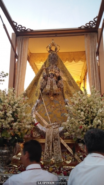 En la homilía de la misa de despedida de esta mañana, el rector del Santuario, Zacarías Romero, con sentidas y emocionadas palabras, junto a la invitación a seguir la consigna evangélica de este domingo "pasemos a la otra orilla, a la orilla de la fe", ha puesto de manifiesto el gran gozo vivido ayer, las muestras de devoción y cariño sincero hacia la Virgen de los pueblos que recorrió y el privilegio que tenemos los egabrenses por custodiar durante tantos siglos esta venerada imagen. Pero también incidió en la importancia de compartir esta devoción centenaria que ayer volvió a ser referente del amor a la Virgen y del resurgir de un seguimiento que, por medio de ella, tantas personas hacen de Jesucristo, invitando a los egabrenses a seguir compartiendo esta devoción. "Ya que la Virgen, porque así lo ha ido fraguando la historia en nuestros pueblos, se hace presente en tantos corazones por medio de la preciosa y singular imagen de Nuestra Señora de la Sierra coronada y de todo lo que se ofrece en torno a Ella. No podemos quedarnósla solo para nosotros pues es una imagen que ha irradiado y mantiene su devoción en otras muchas personas de otros pueblos con los que compartimos tan especial veneración".