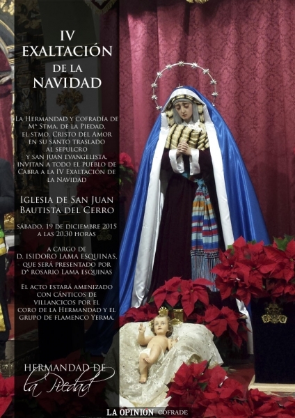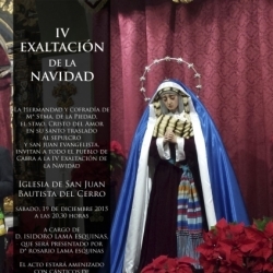 El exaltador será presentado por Dª Rosario Lama Esquinas. En el transcurso del acto, se podrá disfrutar de varios villancicos interpretados por el Coro de la Hermandad y el grupo de flamenco Yerma.
