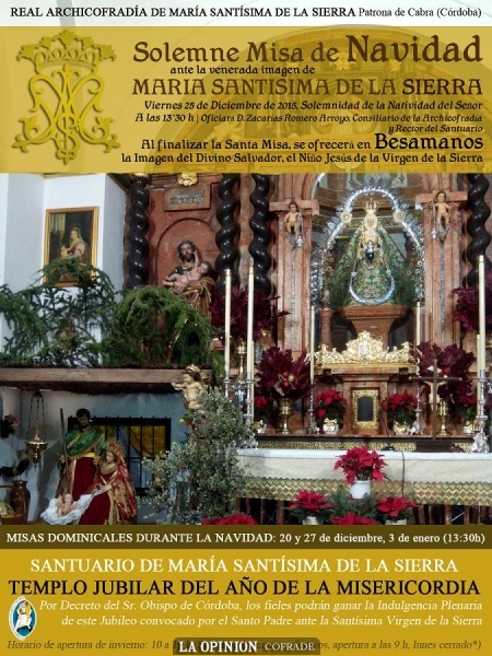 Recordamos a nuestros lectores que el Santuario es uno de los templos jubilares de la diócesis de Córdoba para lucrar la indulgencia plenaria que, con motivo del Año de la Misericordia, se concede a los fieles que peregrinen hasta allí con las condiciones establecidas por la normativa canónica.