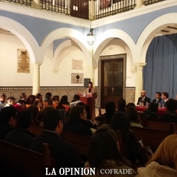 Tras las palabras de bienvenida de nuestro director y miembro del patronato de la fundación Aguilar y Eslava, Antonio Ramón Jiménez, tomó la palabra el presidente de la Agrupación para destacar la importante labor de las cofradías en todos los ámbitos y en particular la especial relevancia que tienen en nuestra ciudad. Seguidamente Antonio Roldán, mayordomo de la Virgen de los Dolores, se encargó de presentar al bordador, destacando algunas de las obras más importantes con que cuenta el joven artista granadino y la minuciosa labor de investigación que desarrolla en paralelo a cada trabajo que se le presenta.