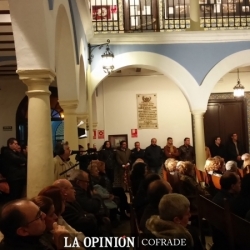 El alcalde de la ciudad, Fernando Priego; el arcipreste y párroco de la Asunción, Zacarías Romero; el presidente de la Agrupación de Cofradías, Francisco Mesa; el hermano mayo de la Virgen de los Dolores, Ildefonso Arana y el artífice de la restauración, José Manuel Martínez, ocupaban la mesa presidencial del acto que contó con numeroso público que no quería perderse esta puesta de largo de un ansiado trabajo de recuperación que ha supuesto un importante esfuerzo para la cofradía de los Dolores y sus componentes. También asistió al acto el delegado de Espacios Culturales, Angel Moreno y hermanos mayores de varias cofradías, junto a los hermanos de la Virgen de los Dolores.