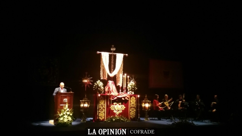 "Relatos de Pasión" para recrearnos en los sentimientos y vivencias de un cofrade apasionado con su Semana Santa que ha hecho nuestros en esta luminosa mañana de ansiadas vísperas. Pasajes brillantes y que hicieron aplaudir al complacido auditorio en un acto que se hizo más largo de lo esperado pero que no disgustó. Sentir Cofrade fue la marcha escuchada tras el alegre pasacalles que no solo abría el acto sino que nos hace vibrar apenas suenan sus primeras notas. Sentir Cofrade el que también ha rezumado el pregón por todos sus costados. Y entre medias, las notas musicales de un quinteto de cuerda en el que han participado los filarmónicos Miriam Castro, Rafael Granados, José Julio Mesa, Pepe Galisteo y Mateo Olaya. Violín, bandurria, laud y dos guitarras para poner en solfa piezas tan singulares y distintas como Martirio, la Marcha Fúnebre de Chopin o Pasan los Campanilleros y que han servido de acompañamiento a un texto elaborado y bien dicho que ha recogido los aplausos del Teatro El Jardinito.