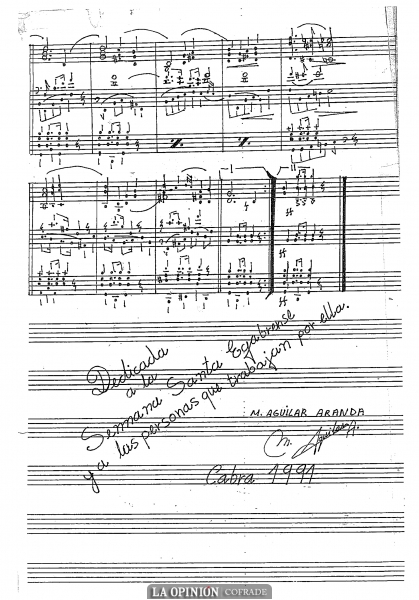 Si subrayamos el estreno de esta marcha, es precisamente porque tras ella, vendría un importante grupo de composiciones para nuestras cofradías, con la firma de Aguilar y Aranda y González Rubio. Al siguiente, se estrenaría González Rubio con su composición "Jesús Nazareno" y Manuel Aguilar proseguiría dedicando páginas musicales a la Semana Santa de Cabra. Ambos, en la década de los noventa, mantuvieron una actividad compositiva muy elevada, estrenando composiciones prácticamente con carácter anual. Así, nacerían marchas como "Soledad, "A Jesús de las Necesidades" o "Getsemaní".