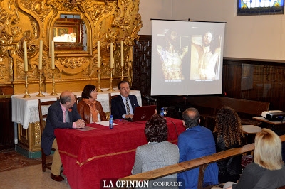 La conferencia se realizó junto a la imagen titular del Cristo de la Sangre y estuvo presidida por la Hermana Mayor de la cofradía, Asunción Castilla Rubia y el hermano mayor de la corporación del Viernes Santo, Cofradía del Dulce Nombre, Santo Cristo del Calvario y Soledad de María Santísima, Francisco Lozano Ruiz.