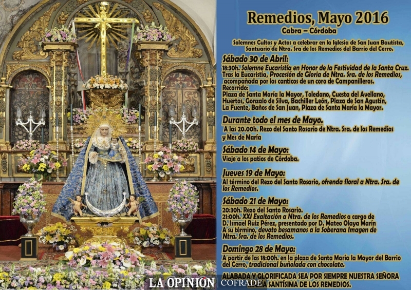 Desde La Opinión Cofrade invitamos a todas las personas que nos siguen a participar en esta exaltación y felicitamos por adelantado a Ismael que seguro nos emocionará con sus sentidas palabras a la Virgen de los Remedios.
