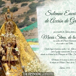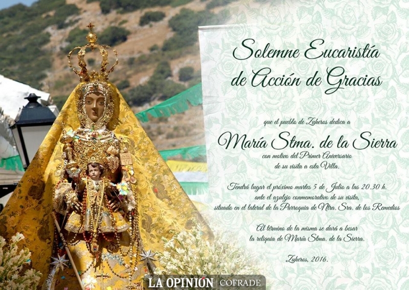 El próximo martes 5 de julio será la Villa de Zuheros quien dedique una nueva Eucaristía a la Patrona de Cabra. En este caso será en el exterior de la Parroquia de Nuestra Señora de los Remedios, concretamente a los pies del azulejo que el 20 de junio de 2015 se bendijo ante la efigie de la Virgen de la Sierra cuando abandonaba dicha localidad.
