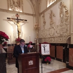 Con afecto saludo al Rvdo. Padre D. Francisco J. Delgado Alonso, Consiliario de Ntra. Cofradía y Párroco de Santo Domingo, gracias Padre, por permitir celebrar por primera vez, en las puertas de su XC aniversario de la refundación de nuestra Hermandad, esta anual Conferencia de Navidad, aquí en esta Capilla de Ntro. Sagrado Titular, como cada 1º viernes de mes, celebramos desde su llegada como Párroco y Consiliario, en nuestra capilla, la Santa Misa en cumplimiento de nuestros Estatutos de Hermandad.