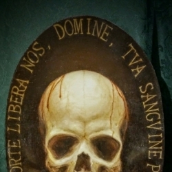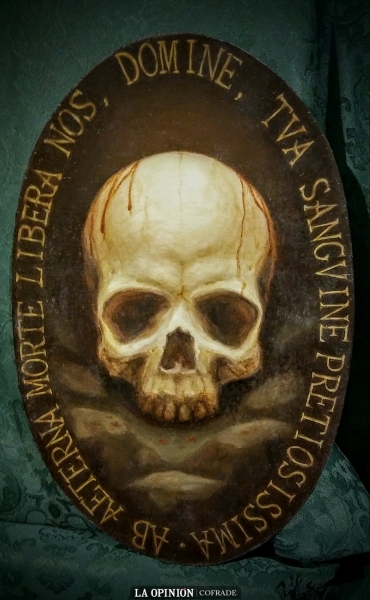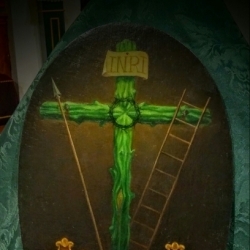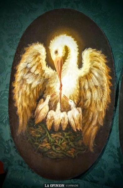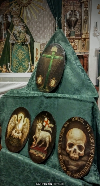 El pintor ha recreado el efectismo barroco en los óleos realizados que representan diversos símbolos y alegorías relacionadas con la crucifixión, el amor y la muerte, así como el antiguo escudo de la hermandad.