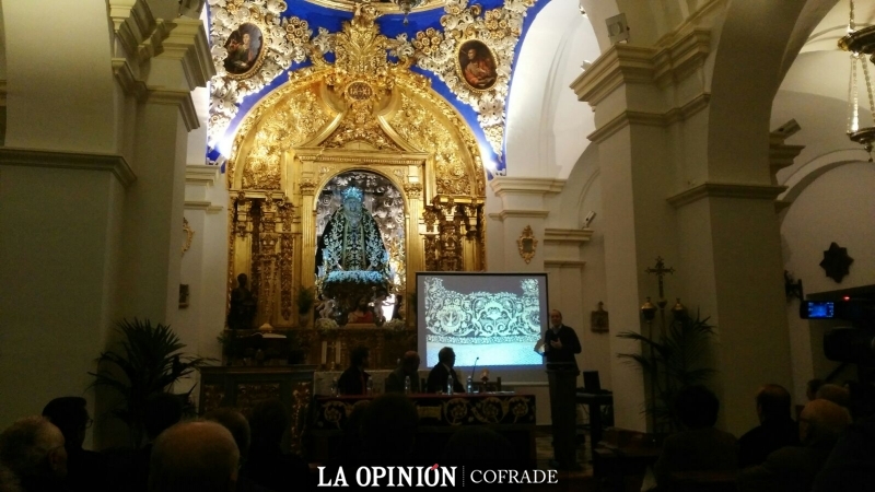 Tomó la palabra también el bordador, Jesús Rosado, quien indicó el estado que muestra actualmente el manto, que si bien en materia de bordado se encuentra de forma óptima, es la base del mismo (el terciopelo) el que mayormente sufre el paso de los años, principalmente por su conservación desde el S. XIX así como por varias mojadas que ha sufrido el mismo en la calle.