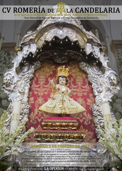 La BENDICIÓN DE LAS CANDELAS tendrá lugar a las 12.00 horas, con procesión de Niño Jesús de la Virgen de la Sierra por los alrededores del Santuario vestido con las tradicionales vestimentas de "cristianar". Terminada la Procesión se celebrará la SOLEMNE EUCARISTÍA, presidida por el rvdo. padre Zacarías Romero Arroyo, Consiliario de la Real Archicofradía y Rector del Santuario.