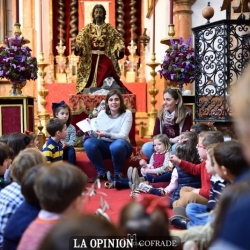 Uno de los actos que han llamado la atención y que este año ha contado con una mayor participación, ha sido el encuentro de los hermanos más pequeños y de otros niños y niñas que se organizó por la hermandad del Huerto ante la imagen del Señor de las Penas en la Asunción. Una actividad que desde hace años se puso en marcha para acercar la Semana Santa y la cofradía a los más pequeños. Se trata de intentar que las niñas y niños se integren con sus familias en la cofradía y conociendo de primera mano todo lo que rodea a la hermandad, se vayan incorporando a esta tradición tan nuestra.