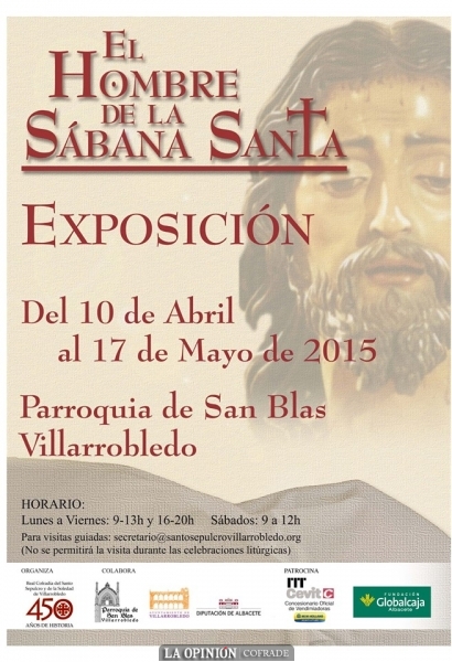 La iglesia de San Blas de Villarrobledo (Albacete) acogerá hasta el próximo día 17 de mayo la exposición "El hombre de la Sábana Santa" de la Fundación Aguilar y Eslava y que cuenta con el patrocinio de Cevit y la Fundación Globalcaja, y se incluye dentro de los actos conmemorativos del 450 aniversario de la Cofradía del Santo Sepulcro y la Soledad de Villarrobledo.