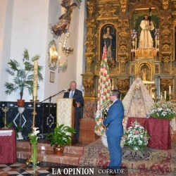 Entre aplausos y felicitaciones, con las coplas de la Virgen de la Sierra que sirvieron de colofón al acto, Paco Corpas ofreció un emotivo pregón y pudimos verlo al finalizar, lleno de gozo y satisfecho con su exaltación a la Virgen de la Sierra. Tras la exaltación intervinieron tanto el hermano mayor de la archicofradía, Antonio Cano como el rector del Santuario, consiliario y arcipreste Zacarías Romero.