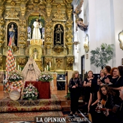 Seguidamente, visiblemente emocionado, el encargado de la exaltación de este año, Francisco Corpas Mesa, subió al atril tras encender una vela a la Virgen y tomar el libro del pregón cuyas pastas le había regalado la hermandad del Mayor Dolor a la que está muy vinculado.