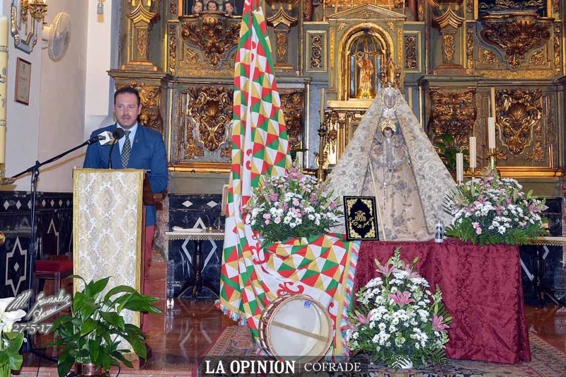 Y comenzó su intervención. Paco Corpas se sintió seguro ante el expectante público que le escuchaba y fue hilvanando un sentido y emocionante discurso que dedicó a sus dos madres: a la Virgen de la Sierra y a la que le dio la vida en la tierra. A ella, que echa de menos desde su pérdida, dedicó cariñosas palabras cargadas de sentimiento.