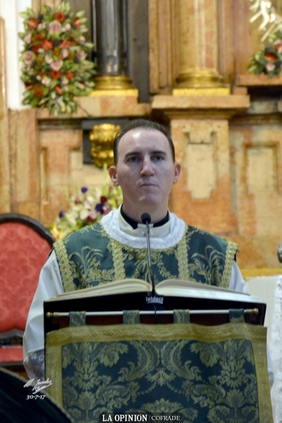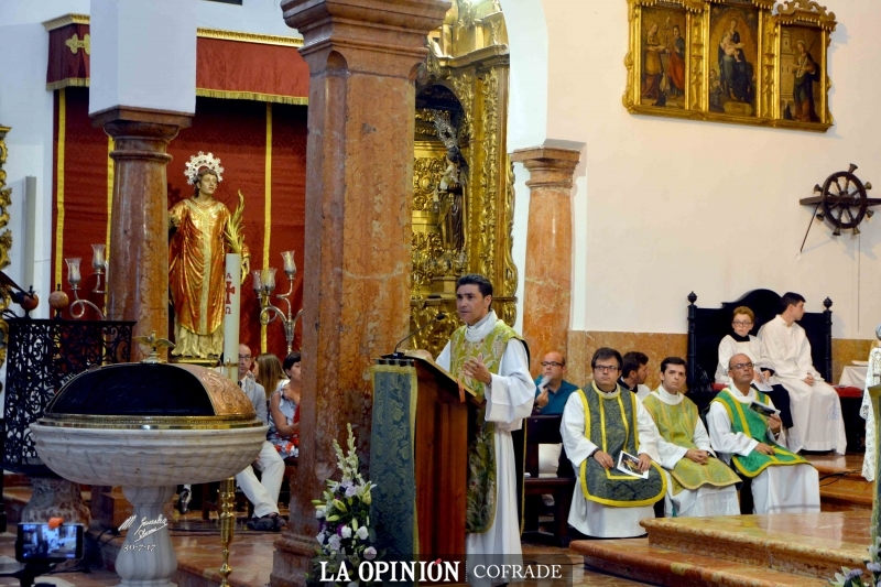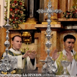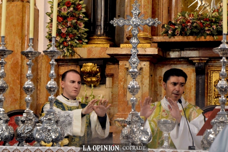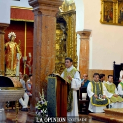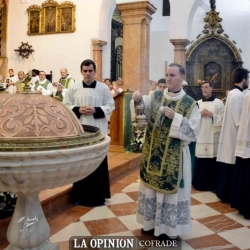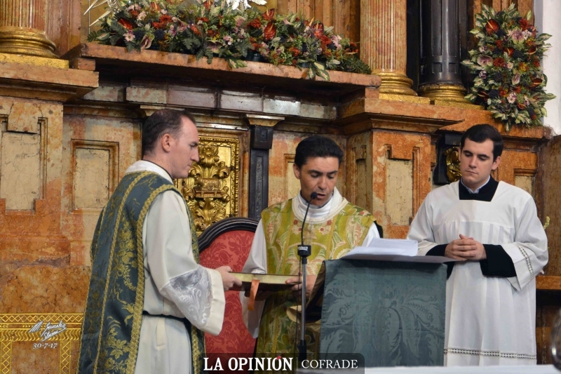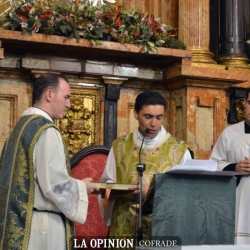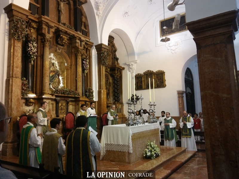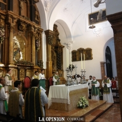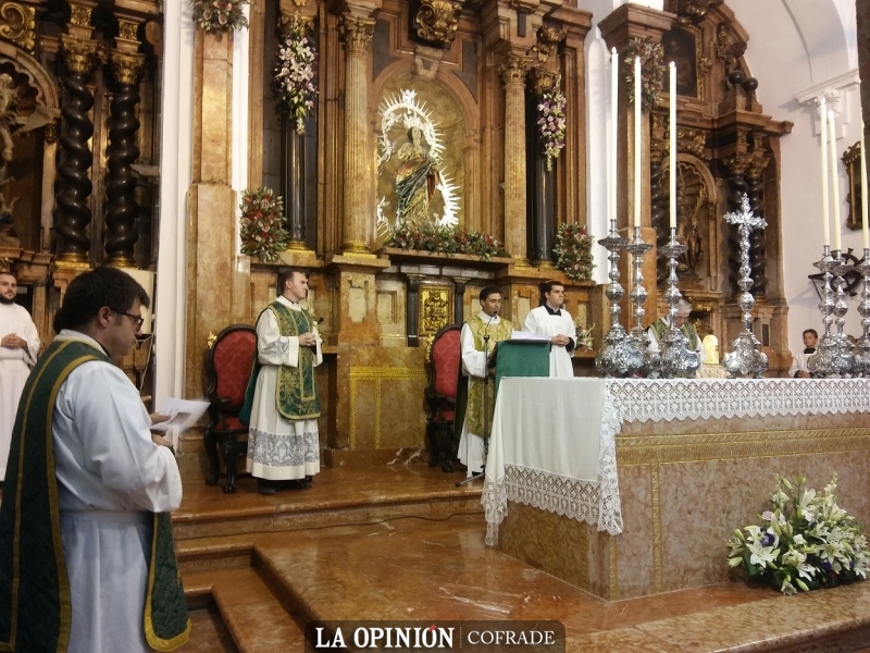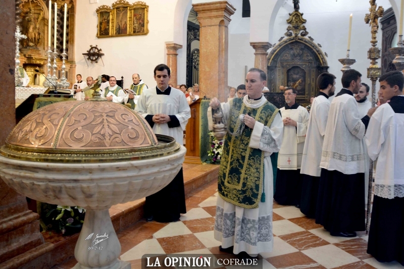 La parroquia de la Asunción estaba repleta de público cuando se anunciaba el inicio de la celebración que ha revestido gran solemnidad. A los sones del órgano barroco interpretados por Manuel Calahorro y con la participación de la Schola Cantorum egabrense y la Coral san Juan Pablo II, se iniciaba el canto de las letanías mientras la procesión de entrada avanzaba por la nave central de la antigua Iglesia Mayor Parroquial de Cabra.
