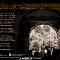 Domingo 8 de octubre, a las 6:00h misa de despedida en la parroquia de la Asunción y Ángeles, tras la que saldrá a hombros de sus costaleros la imagen de Nuestra Señora, Maria Santísima de la Sierra coronada.