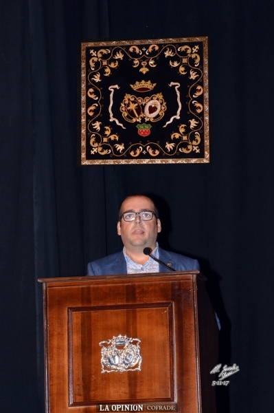 Tomaba después la palabra el pregonero 2018, quien iniciaba su intervención diciendo "aquí me tenéis con la mayor humildad y me presento como un servidor que vengo a cumplir con el cometido que se me ha encargado". A su predecesor dio las gracias "por cederme el testigo de un pregón que difícilmente podremos igualar. Compañeros y amigos de instituto, eramos tres amigos, Manuel Pérez Alcázar, José María y yo que, entre libros de bachiller queríamos arreglar la Semana Santa de Cabra".