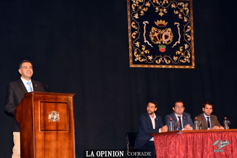 El acto ha tenido lugar en el Cinestudio Municipal presidido por el alcalde de la Ciudad, Fernando Priego; el presidente de la Agrupación de Cofradías, Francisco Leopoldo Corpas; el secretario del organismo cofrade, Francisco Ramos y el propio pregonero. También se encontraba entre el público, el delegado de Fiestas, Guillermo González, junto a otros miembros del gobierno municipal, la junta de gobierno de la Agrupación, hermanos mayores y juntas de las distintas cofradías y el párroco de los Remedios, el sacerdote Rafael Castro.
