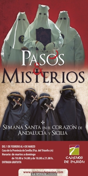 Desde el pasado jueves 1 de febrero puede visitarse en Sevilla la muestra"Pasos y Misterios. La Semana Santa de Andalucía y Sicilia", que se pudo ver el año pasado en el Oratorio di Sant"Elena e Constantino de Palermo, y que ahora se expone en la Casa de la Provincia de Sevilla