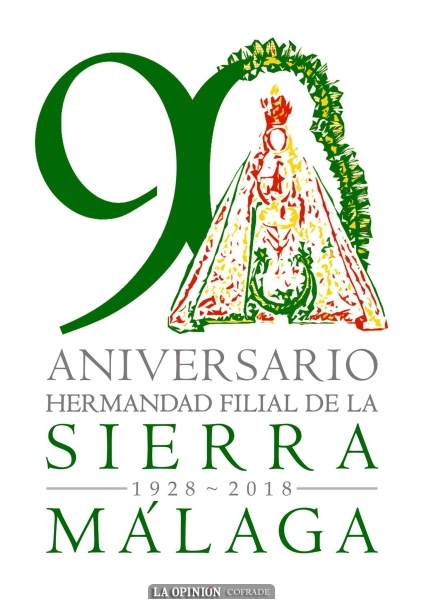 Con el logotipo que Pablo Flores ha realizado para el 90º aniversario, se pretende invitar a todos los acontecimientos que esta filial malagueña está preparando en este año tan especial. Como el mismo autor nos indica "el logotipo se compone de un anagrama en el que se recoge los años que lleva esta hermandad desde su fundación. 90 años de historia de la presencia de María Stma. de la Sierra en la capital de la costa del sol. Por ello, no podía faltar la silueta de la Santísima Virgen, trazada con los colores que la caracterizan el rojo, verde, amarillo y blanco, se funde, junto con la ráfaga que la acompaña, con el último dígito de esta cifra. Siendo el verde el color predominante y símbolo de la esperanza, virtud que esta filial goza para mantener y proclamar la devoción hacia María Santísima de la Sierra. Y bajo esta, el enunciado que nos ayuda e informa que es lo que vamos a vivir, todo ello bajo un estilo minimalista pero a la vez legible y llamativo con un simple golpe de ojo".