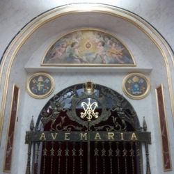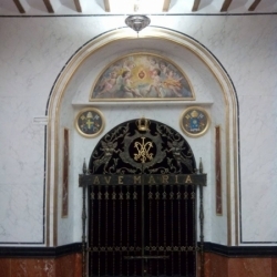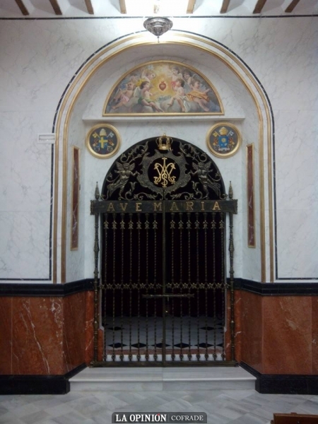 El reconocido artista ha sido el encargado de la decoración pictórica de la puerta de acceso (frente a la escalinata de los Miradores) al Santuario, en la parte interior que da a la Iglesia.