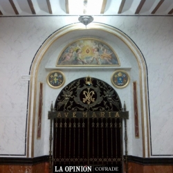 En las fotografías publicadas por la Real Archicofradía en su página de facebook, podemos ver detalles del trabajo, el momento de entrega por parte de Raúl Berzosa, los encargados de la preparación de la pared y el arco y el estado anterior del mismo.