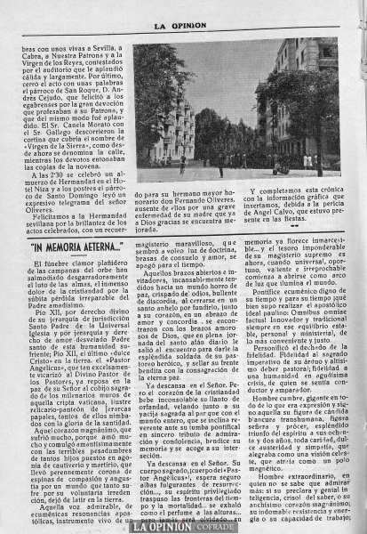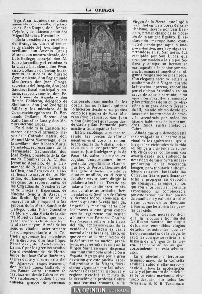Para los hermanos de la filial de Sevilla, octubre es mes festivo en San Roque, ya que celebran los actos en honor de Nuestra Madre María Santísima de la Sierra. Patrona de Cabra (Córdoba). El cartel anunciador de este año es obra del hermano de la filial sevillana, Fernando Aranda Arques.